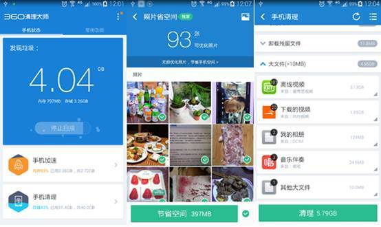 与此同时,如360清理大师这样的清理加速软件在技术上也在不断创新,如近期首创的EPS图片扫描引擎技术,可快速将手机相册中多拍、美化、连拍无用照片归类并清理,快速为用户找出无用视频文件,视频、游戏、购物加速功能等,使手机清理加速实用性提高。而以上仅是360清理大师功能中的一小部分功能。