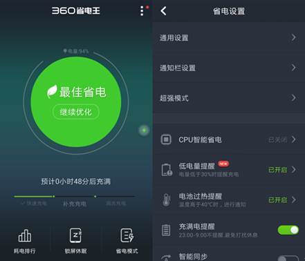 系统满负荷运行会导致手机发热,同时也影响手机电量消耗,因此电量耗损情况也是手机发热体征之一。360省电王中的耗电排行会将全部软件中的耗电情况,从大到小排列清晰显示出来,你可以依据耗电数据进行查看、禁止自启甚至卸载耗电软件的操作,让手机的电量重新回归到自己手机。此外,360省电王还具备电池过热提醒功能,当温度高于40°C,会及时通知机主,避免遇到烫伤、烧伤甚至爆炸情况发生。