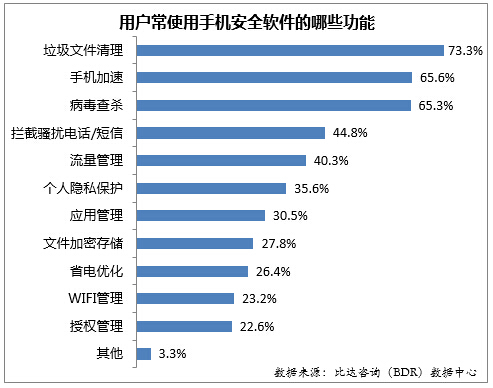 比达咨询:清理加速成手机用户最常用安全软件功能